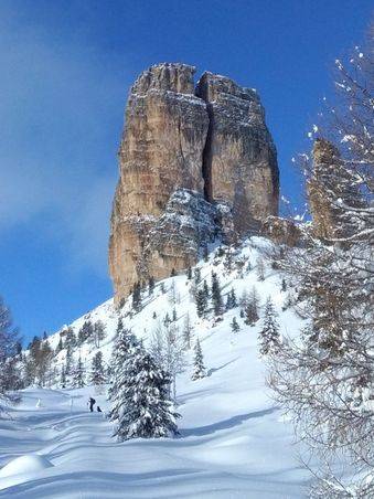 Un’altra attrazione naturale che da sempre stupisce villeggianti, alpinisti e turisti sono le 5 Torri, un gruppo di monoliti di dolomia stratificata che si ergono come bastioni di un castello diruto. Con la neve acquisiscono un fascino particolare, i rumori sono attutiti, la neve si incolla ad ogni sporgenza, alle rocce verticali e spigolose si contrappongono le morbide rotondità del terreno innevato.